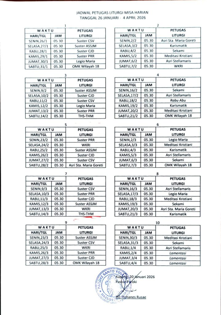 Jadwal Ibadat