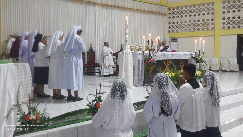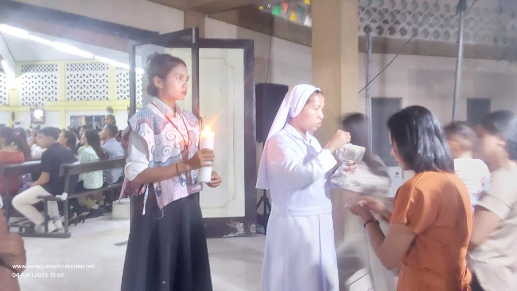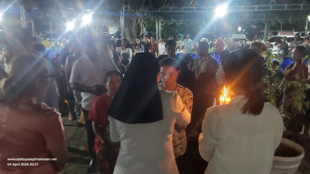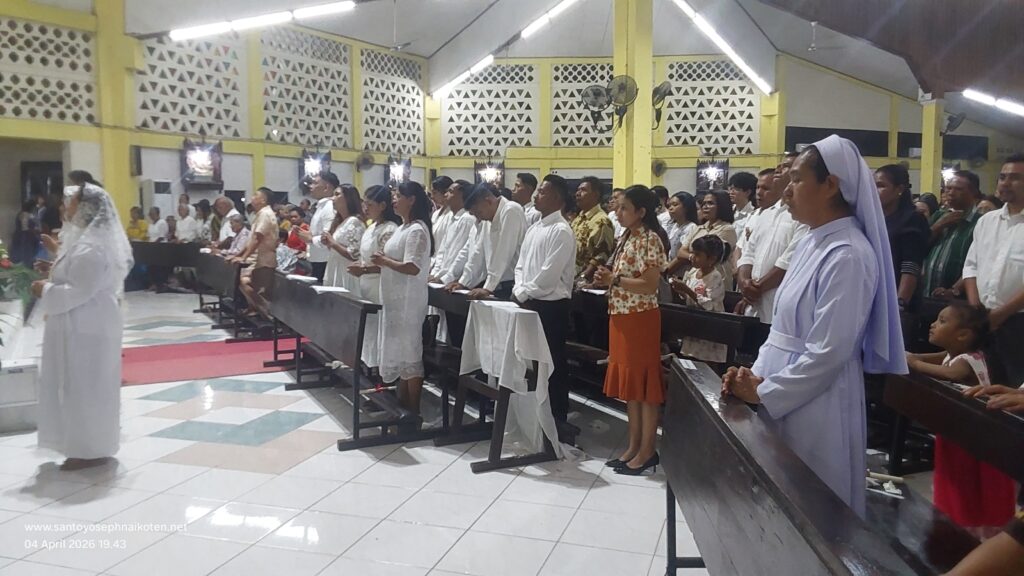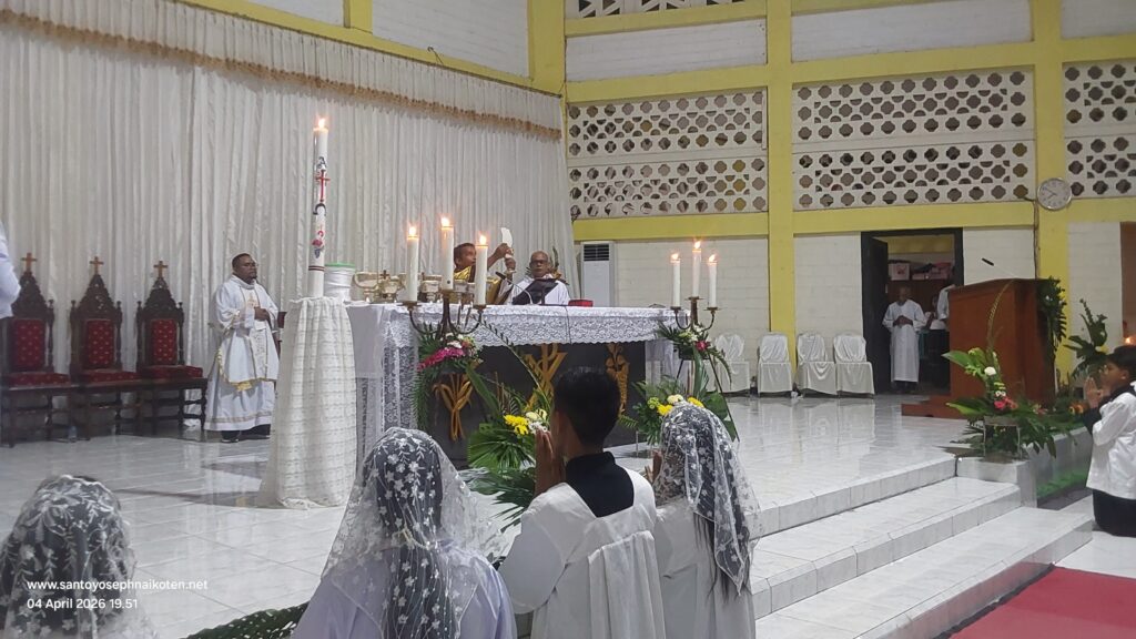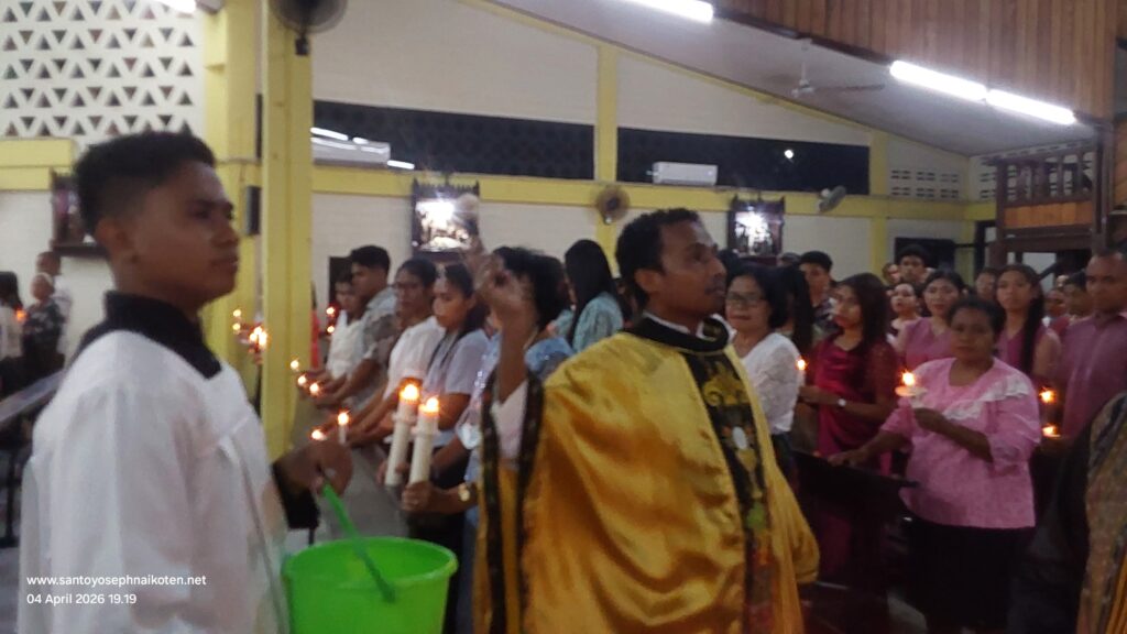 Paroki St.Yoseph Naikoten Kupang menyelenggarakan dua perayaan Ekaristi Malam Paskah pada hari Sabtu 4 April 2026. Misa pertama pada Pkl.17.30 wita dan Misa II pada Pkl.20.00 wita.