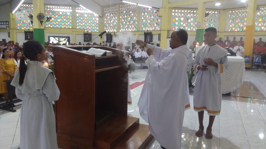 RD Jhon Rusae menegaskan bahwa sepanjang tahun 2025, Yesus telah menjadi Tuhan bagi kita, menjadi sumber kehidupan, sumber kekuatan, dan tuntunan dalam perjalanan hidup. Oleh karena itu, kita diajak untuk bersyukur kepada Tuhan. Kita pun diminta untuk berterima kasih kepada orang tua yang telah menjadi saluran kehidupan Tuhan bagi kita.