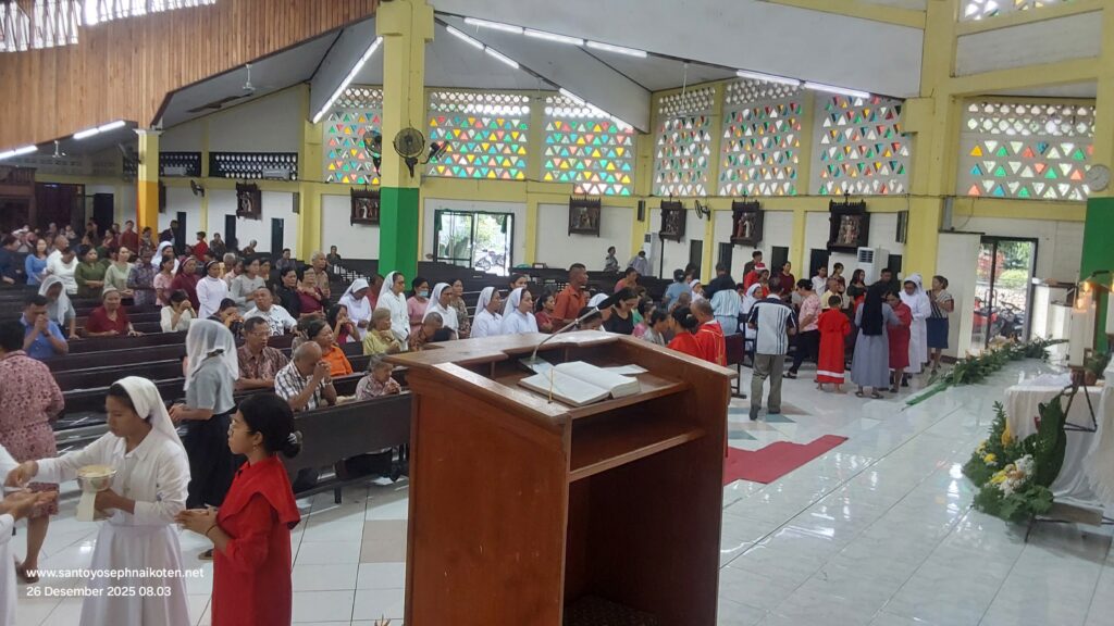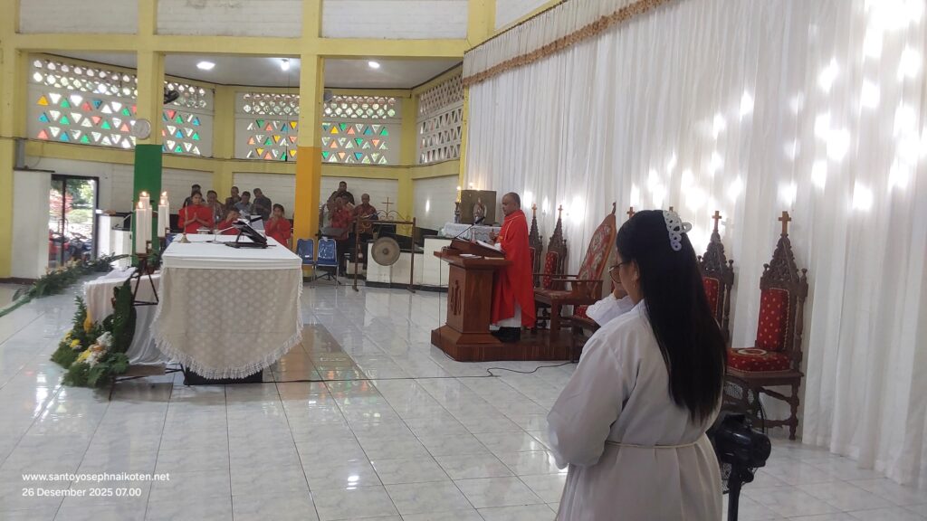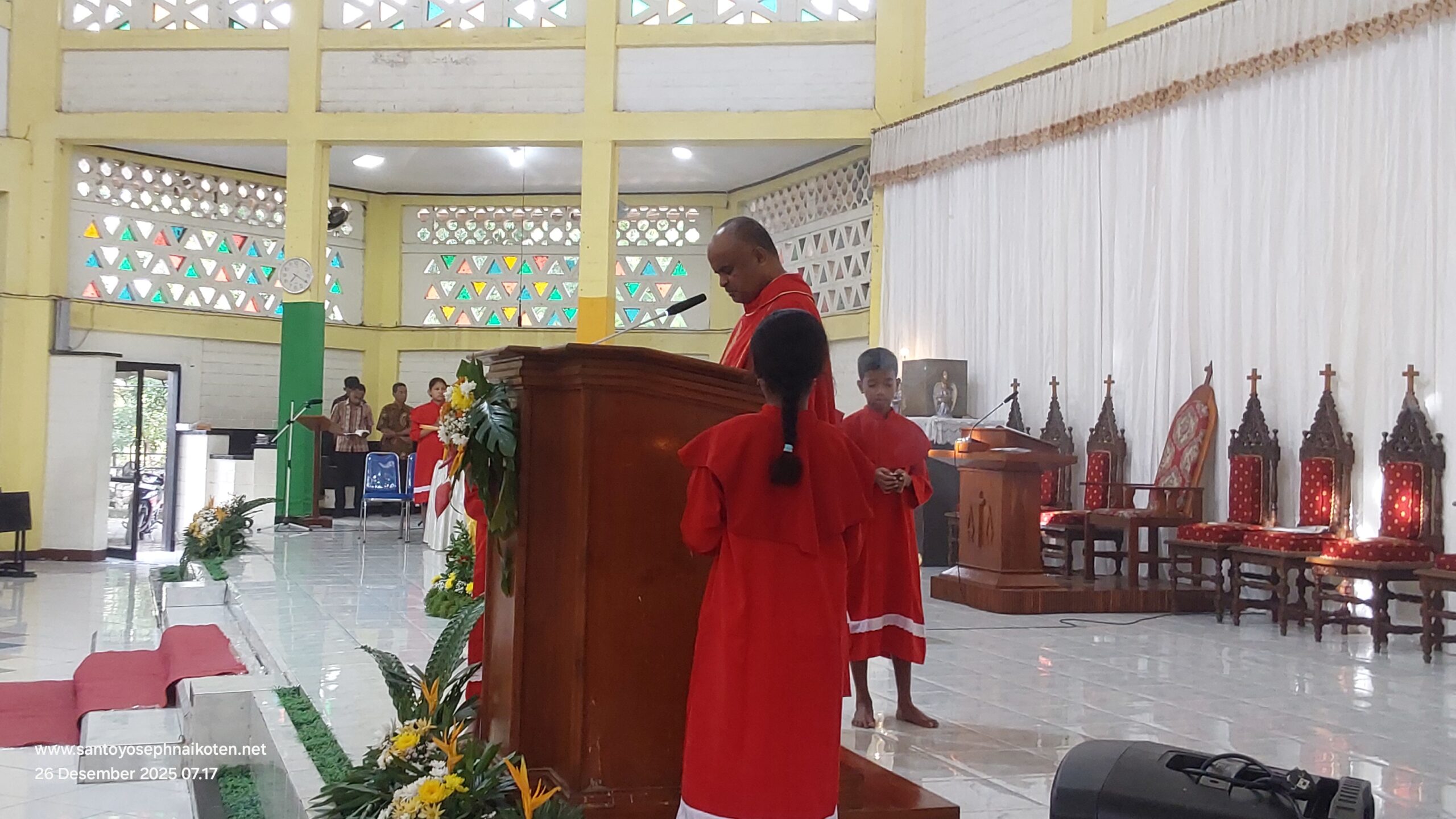 Paroki St. Yoseph Naikoten, Kupang, pada hari Jumat, 26 Desember 2025, menyelenggarakan Perayaan Misa Natal II Pesta St.Stefanus Martyr Pertama.Perayaan Ekaristi dilaksanakan pada pagi Pkl.07.00 wita dan sore hari Pkl.16.30 wita.