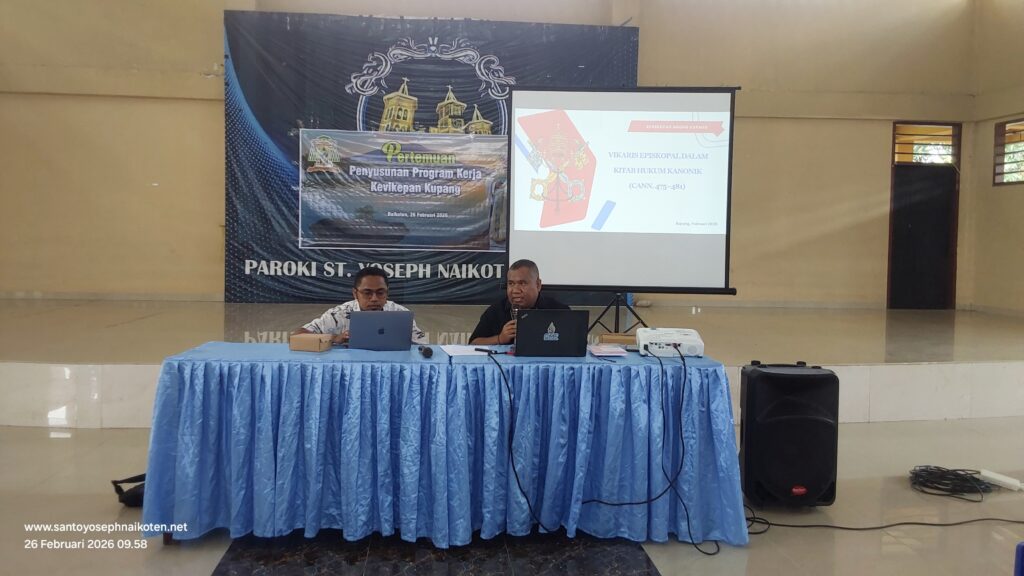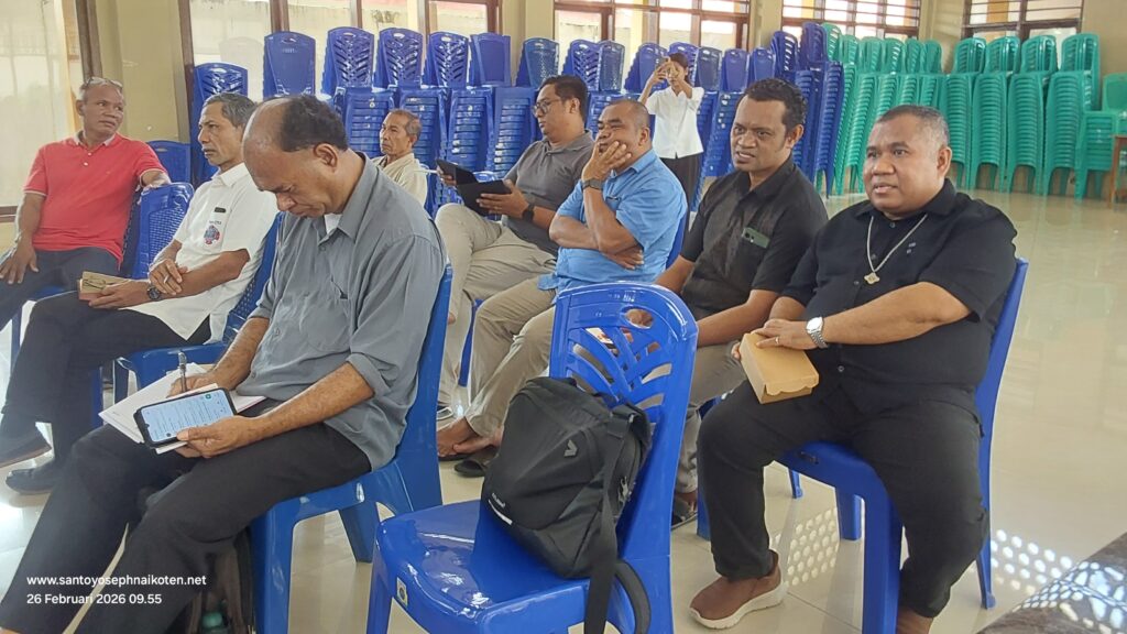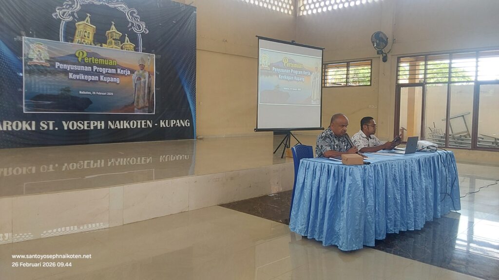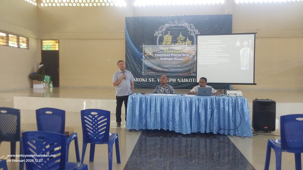 Pertemuan Penyusunan Program Kerja Kevikepan Kupang dilaksanakan di Aula P. Blasius Fernandez, SVD., Paroki St. Yoseph Naikoten Kupang, Rabu 26 Februari 2026, pukul 09.30–12.30 WITA.
