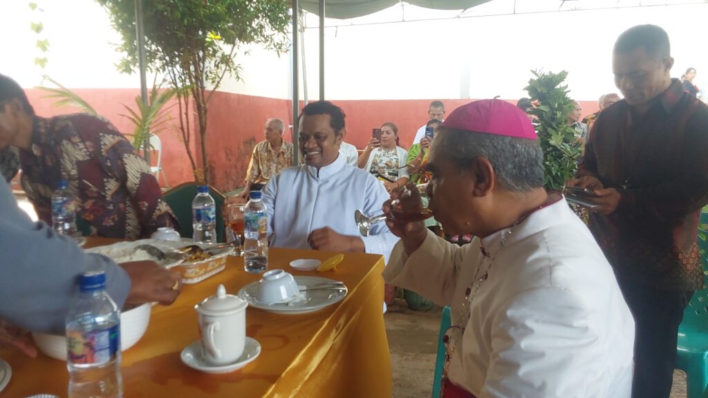 Selanjutnya setelah Misa diadakan resepsi sederhana di teras Pastoran.