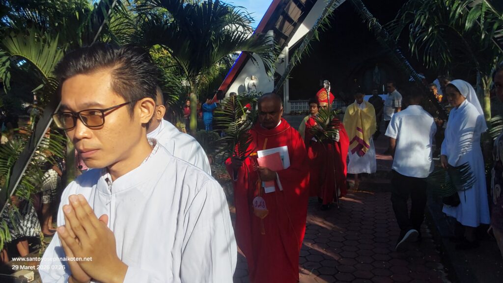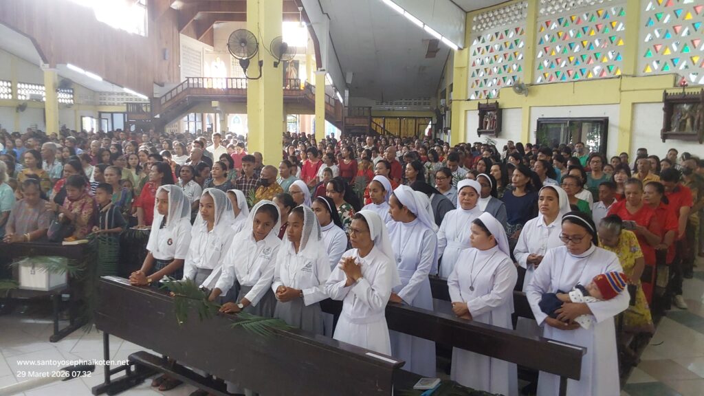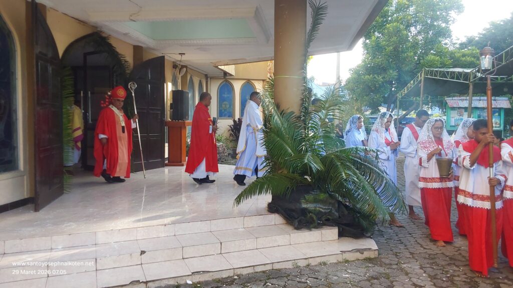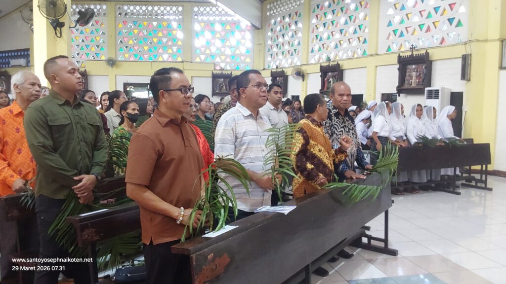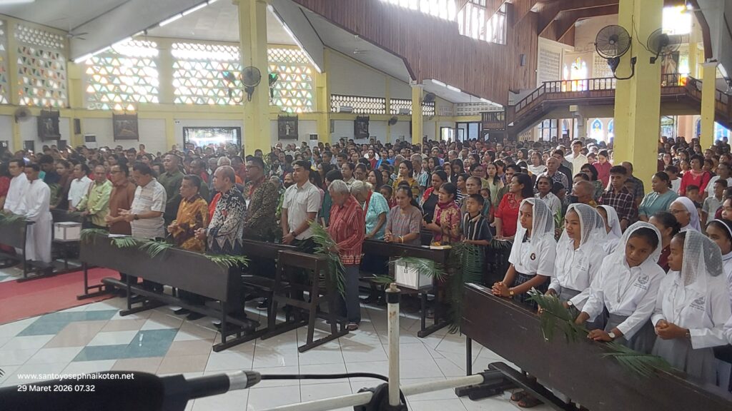 Perayaan Misa Minggu Palem di Paroki Santo Yoseph Naikoten berlangsung pada Minggu (29/3) dilaksanakan pada Pkl. 07.00 WITA, 16.30 WITA, dan 18.00 WITA.