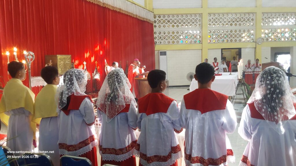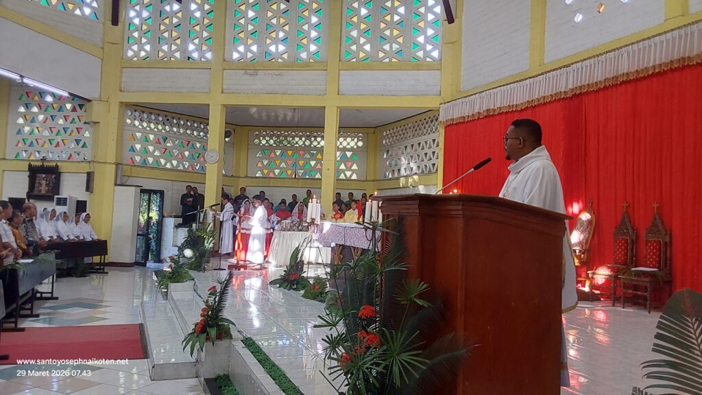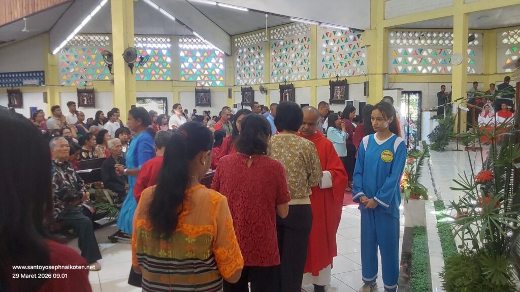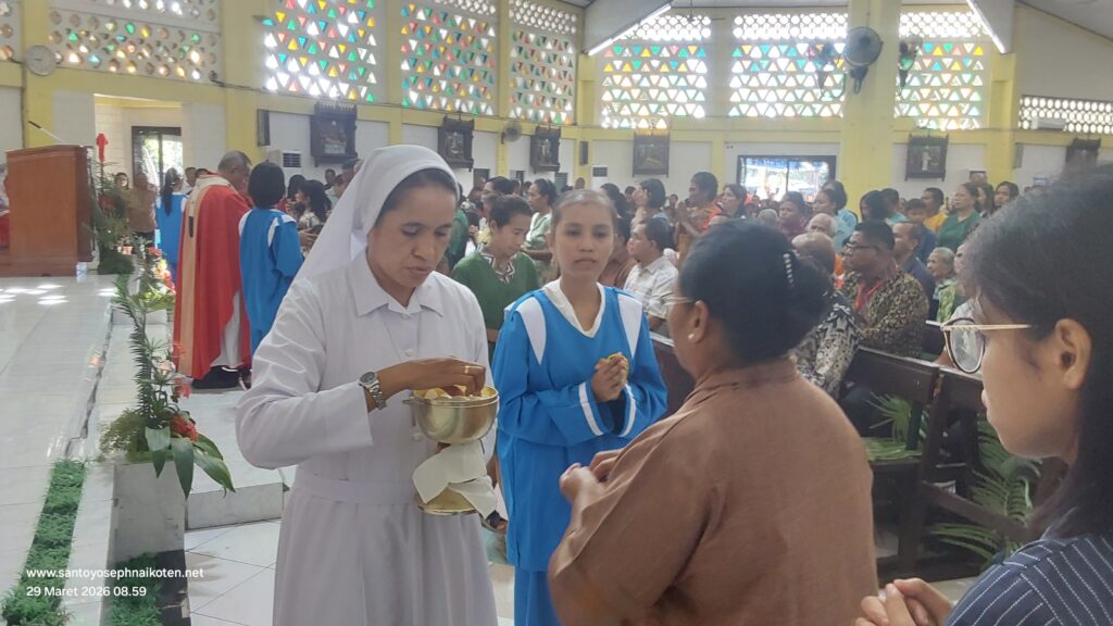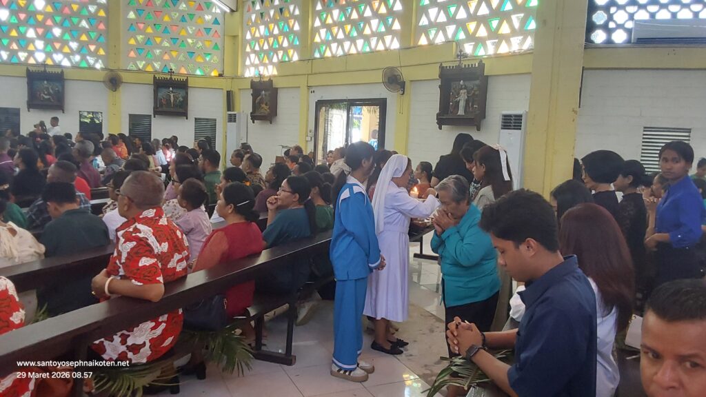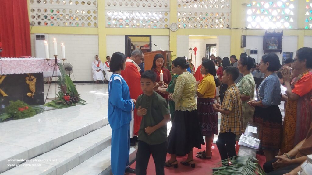 Perayaan Misa Minggu Palem di Paroki Santo Yoseph Naikoten berlangsung pada Minggu (29/3) dilaksanakan pada Pkl. 07.00 WITA, 16.30 WITA, dan 18.00 WITA.